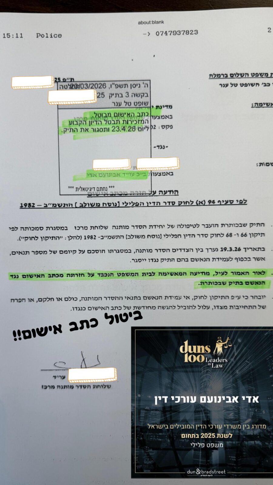 - ביטול כתבי אישום בעבירות סמים, רכוש, תקיפת שוטרים ואלימות במשפחה