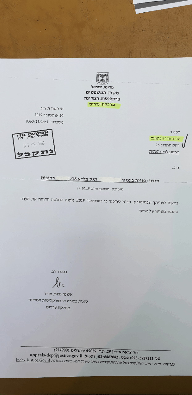 דחיית ערר על סגירת תיק פלילי כנגד לקוחנו שייחס לו עבירת חבלה ברשלנות.