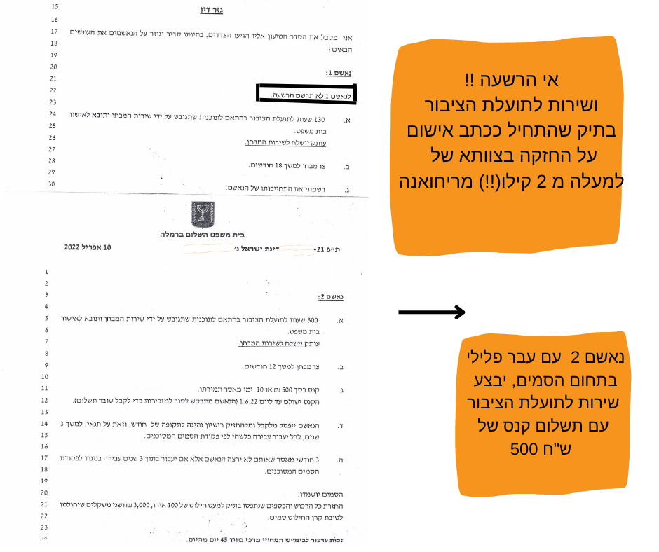 אי הרשעה ושירות לתועלת הציבור בתיק של לקוחנו שהתחיל כתיק החזקת סמים בכמות של למעלה משני קילו
