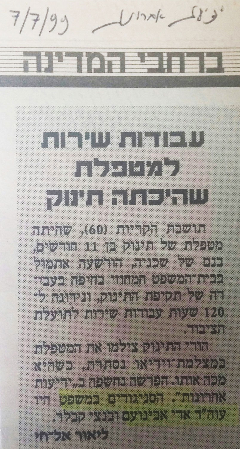 עבודות שירות למטפלת שהיכתה תינוק
